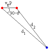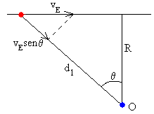 Cuando el observador no está en la dirección del movimiento rectilíneo del emisor, trazamos una línea recta que pase por el emisor y el observador en el instante t, y proyectamos la velocidad vE del emisor a lo largo de dicha recta.