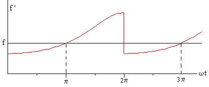 En la figura, se representa la frecuencia f’ en función de ωt.