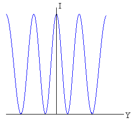 Las posiciones y sobre la pantalla situada a una distancia x de las fuentes, que registran interferencia constructiva y destructiva se calculan mediante y=x·tgq . Si el ángulo q es pequeño podemos hacer la aproximación, senq ≈tgq =y/x La intensidad de un movimiento ondulatorio es proporcional al cuadrado de la amplitud, I es la intensidad resultante en el punto P cuando las dos fuentes emiten simultáneamente, e I0 es la intensidad en el punto P debido a una sola de las fuentes.