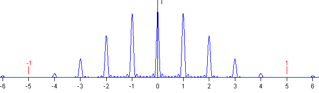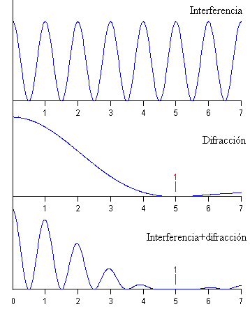 Como a>b, los ceros del diagrama de difracción están más espaciados que los máximos del diagrama de interferencia, tal como puede apreciarse en la figura.