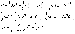 Como la energía E=kx2/2 es del orden de kBT. Siendo kB la constante de Boltzmann (no confundir con la constante k del potencial armónico) y T la temperatura absoluta, llegamos a la expresión para δx El valor medio de la posición x de una partícula que se mueve bajo la acción de una fuerza cuya energía potencial es de la forma Ep(x)=kx2/2-skx3/3 es proporcional a la temperatura T, y depende del cociente s/k. El valor medio es cero para las oscilaciones armónicas, s=0.