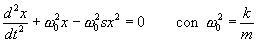 Vamos a estudiar las oscilaciones de una partícula unida a un muelle no ideal en torno a la posición de equilibrio estable x=0. Ecuación del movimientoLa ecuación del movimiento es ma=-kx+skx2 o en forma de ecuación diferencial