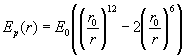 El potencial de Lennard-JonesLa energía potencial Ep(r) de una molécula debida a las fuerzas intermoleculares es una función de r, la distancia entre los centros de las dos moléculas interactuantes. Esta función se puede expresar mediante una función conocida como potencial de Lennard-Jones. El potencial de Lennard-Jones tiene una forma similar al potencial de Morse, una fórmula empírica que describe bastante bien la energía potencial del estado ligado de una molécula diatómica para una configuración electrónica dada. Los parámetros r0 y E0 están determinados por la estructura de las moléculas individuales. Para r>r0 la pendiente de Ep(r) es positiva, la fuerza es atractiva, para r<r0, la pendiente es negativa y la fuerza es fuertemente repulsiva, mientras que para r=r0 la fuerza es nula (mínimo de la energía potencial). Algunos valores típicos de r0 y E0 son los siguientes