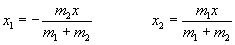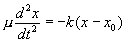 El movimiento de un sistema aislado de dos partículas lo podemos reducir al movimiento de una partícula de masa m que se mueve alrededor de un centro fijo de fuerzas bajo la acción de la fuerza de interacción mutua. m ·a12=F12 donde m es la masa reducida, a12 es la aceleración relativa de la partícula de masa m1 respecto de la partícula de masa m2, y F12 es la fuerza F(x) que describe la interacción mutua. En forma de ecuación diferencial Esta es la ecuación diferencial de un Movimiento Armónico Simple de frecuencia angular Ejemplo: Determinar la constante k de fuerza de interacción entre los átomos de la molécula HCl sabiendo que su frecuencia de vibración f0=9·1013 Hz. Datos: la masa del hidrógeno m1=1 y la masa del cloro m2=35 u.m.a. Una unidad de masa atómica (u.m.a.) vale 1.67·10-27 kg. Teniendo en cuenta que w0=2p f0, obtenemos k=519.2 N/m Movimiento de los átomosLa solución de la ecuación diferencial es x=x0+A·sen(w0t+j ) Donde x0 es la separación de equilibrio, A es la amplitud y j la fase inicial que se determinan a partir de las condiciones iniciales, es decir, la posición x y la velocidad v en el instante t=0. Conocido el movimiento relativo de la partícula de masa m1 respecto de la partícula de masa m2, y suponiendo que el centro de masas de este sistema aislado está en reposo, podemos determinar fácilmente el movimiento de cada una de las dos partículas.