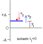Se pulsa el botón titulado Inicio Se sitúa la bola en la altura inicial h, y el pistón empieza a moverse entre las posiciones –A y +A. Cuando se pulsa el botón Empieza, la bola se deja caer en el instante t0, que se señala en la parte superior derecha del applet. Se observa el movimiento de caída de la bola y los sucesivos rebotes sobre el pistón. En la parte derecha del applet, se representa la posición de la bola y del pistón en función del tiempo t. Ejemplo: Introducimos los siguientes datos