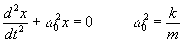 La ecuación del movimiento se escribe Teniendo en cuenta que la aceleración es la derivada segunda de la posición x, podemos expresar la ecuación del movimiento como ecuación diferencial de segundo orden. w 0 se denomina frecuencia propia o natural del oscilador armónico.La ventaja de expresar las oscilaciones en términos de una ecuación diferencial es que podemos establecer analogías entre sistemas físicos oscilantes completamente diferentes: mecánicos eléctricos, hidráulicos, etc. La solución de esta ecuación diferencial es la ecuación de M.A.S. Condiciones inicialesLa posición inicial x0 y la velocidad inicial v0 determinan la amplitud A y la fase inicial j. Para t=0, x0=A·senj En este sistema de ecuaciones se despeja A y j a partir de los datos x0 y v0 Ejemplo: Sea un MAS de frecuencia angular ω0=100 rad/s. Sabiendo que la partícula parte de la posición x0=5 con velocidad inicial nula, v0=0, escribir la ecuación del MAS. 5=A·senj La ecuación del MAS es x=5·sen(100t+π/2) Instantes en los que el móvil pasa por una determinada posición
