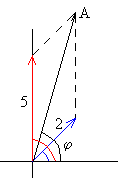 A·cosφ=2cos(π/4)+5cos(π/2) Se despeja la amplitud A y la fase inicial φ A=6.57, φ=1.35 rad
