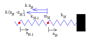 Ecuaciones del movimientoEn las figuras se muestran las fuerzas sobre la primera partícula de masa m1, la partícula i y la última partícula N de masa mN