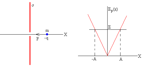 Esta función no se puede desarrollar en serie alrededor de x=0. Un ejemplo más de este tipo de oscilador, es el movimiento de una pieza de dieléctrico entre las placas de un condensador conectado a una batería. Ecuación del movimientoLa posición y velocidad de la partícula en cualquier instante t se calculan mediante las ecuaciones del movimiento uniformemente acelerado