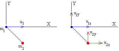 Choques frontalesLos choques frontales son las más fáciles de describir ya que solamente, precisan la aplicación del principio de conservación del momento lineal y la definición de coeficiente de restitución. m1u1 =m1v1+m2v2 (1) -e·u1=v1-v2 (2)