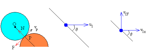 Se resuelve el sistema de ecuaciones se evalúa el primer y segundo miembro de la ecuación (6) caso "desliza" A=μ(v1ysenθ-v1xcosθ+u1cosθ) Si A>B se mantiene el resultado, en caso contrario se resuelve el sistema alternativo