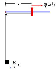 que como vemos es la diferencia entre la fuerza centrífuga y la fuerza que ejerce el medio bloque que cuelga.