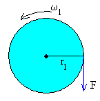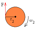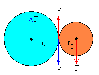 Podemos calcular el trabajo del momento de las fuerzas interiores o de interacción entre los discos F iguales y de sentido contrario que actúan en el punto de contacto. Las fuerzas exteriores que actúan en los ejes de los discos no realizan trabajo alguno.