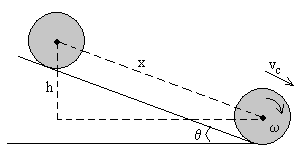 La aceleración del c.m. del cilindro es La velocidad del c.m. en la base del plano inclinado es x=ac·t2/2 Si x=3 m, vc=4.23 m/s Aplicamos el balance energético