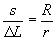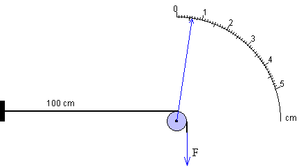 Puede demostrarse que el área encerrada por ambas curvas es proporcional a la energía disipada en el interior del material elástico. La gran histéresis elástica de algunas gomas las hace especialmente apropiadas para absorber las vibraciones. Medida del módulo de elasticidadEn la figura, se muestra el dispositivo experimental. Se emplea un hilo de un metro de longitud dispuesto horizontalmente fijado por un extremo, mientras que el otro pasa por una polea. Del extremo libre se cuelgan pesas de 100 g, 250 g ó 500 g. Al poner pesas sobre el extremo libre del hilo, el alambre se alarga y la polea gira un ángulo igual a DL/r. Siendo r el radio de la polea. Como el alargamiento DL es pequeño, se puede medir mediante una aguja indicadora que marca sobre un sector circular cuyo radio es R=10·r veces el radio de la polea.