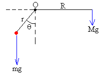 Equilibrio y estabilidadEl equilibrio se logra, cuando el momento del peso que cuelga respecto del eje de rotación del disco, es igual y de sentido contrario al momento de la masa adicional m pegada al disco a una distancia r de su eje. El desplazamiento angular de equilibrio θe de la masa puntual es