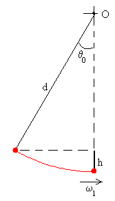 La energía total es E3=mgd(1-cosθ1) Quinta etapaEs similar a la primera etapa, el columpio se mueve hacia la posición de equilibrio estable θ=0, que alcanza con una velocidad angular ω3. Aplicando el principio de conservación de la energía La energía total es E3 Sexta etapa