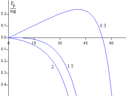 En la figura, podemos ver el comportamiento de Fp frente al ángulo θ para tres valores de v02/gL.