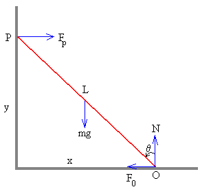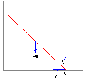 Como v02/gL<3/2, el extremo P de la escalera permanece en contacto con la pared vertical Fp>0, hasta un ángulo crítico θc tal que Fp=0.