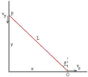 Como v02/gL>3/2, el extremo P de la escalera deja de estar en contacto con la pared vertical cualquiera que sea el ángulo inicial θ0