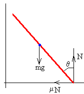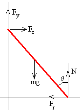 La posición del centro de masas es (x, y). Mientras el extremo superior de la barra está apoyada en la pared vertical Fx>0, hay una relación entre x, y y el ángulo θ.