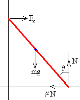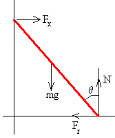 Conocido el ángulo θ, despejamos la fuerza de rozamiento Fr que impide que el extremo inferior deslice a lo largo de la pared horizontal