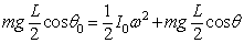 El desplazamiento angular θ crece exponencialmente con el tiempo. Estudio energéticoLa energía potencial del c.m. de la varilla E=mg(L/2)·cosθ0 se convierte en energía cinética de rotación. El principio de conservación de la energía se escribe.