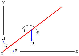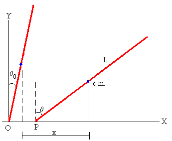 Donde Io es el momento de inercia de una varilla de masa m y longitud L respecto de un eje perpendicular a la varilla que pasa por el punto de contacto O con el suelo. Aplicando teorema de Steiner