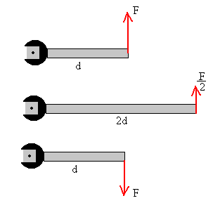 Momento de una fuerzaSupongamos que tenemos tres llaves que actúan sobre tres tornillos en la forma indicada por las figuras. Se aplica una fuerza F en el extremo de la llave. Es fácil contestar a las siguientes preguntas: