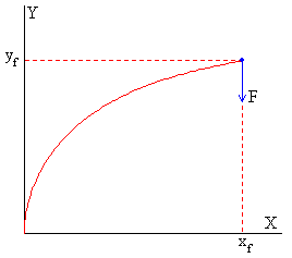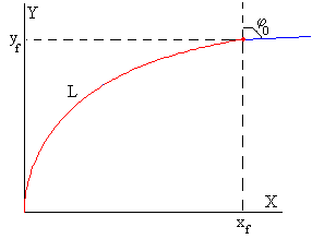 Se pulsa el botón titulado Calcular Se representa una barra de longitud L=1 m deformada por la fuerza F aplicada en su extremo libre. Se proporcionan los datos de las coordenadas (xf, yf) de dicho punto y el ángulo φ0, que forma la recta tangente a la barra en su extremo libre con el eje vertical Y Se sugiere al lector, representar tres gráficas, en el eje X, el cociente F/F0, y en eje Y