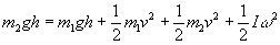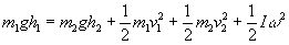Formulamos el principio de conservación de la energía Existe una relación entre h1 y h2, la misma que existe entre v1 y v2. Recordaremos que las magnitudes angulares son las mismas para todos los puntos del sólido en rotación mientras que las magnitudes lineales son proporcionales al radio.