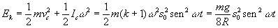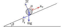 Para un cuerpo redondo (aro, cilindro o esfera) de masa m y de radio r y cuyo momento de inercia Ic=k·mr2 siendo k=1 para un cuerpo en forma de un aro, k=1/2 para un cilindro o disco, y k=2/5 para una esfera. ac+krα=-g·senθ (1) Finalmente, nos queda la condición de que el cuerpo rueda sin deslizar, que como demostraremos más adelante es ac=a ·r La ecuación del camino