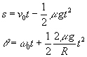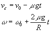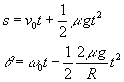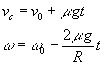 Segundo caso, v0<w0·RLa fuerza de rozamiento apunta hacia la derecha. Las ecuaciones del movimiento serán
