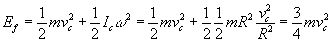 Después de un cierto tiempo t en el que el disco rueda (sin deslizar) la energía cinética de rotación es la tercera parte de la energía total, tal como hemos demostrado en el apartado balance energético. La energía cinética de rotación final está representada por un sector de 120º, mientras que la de traslación está representada por un sector de 240º. Podemos observar también, que la energía inicial es mayor que la final, la diferencia se pierde como trabajo de la fuerza de rozamiento.