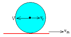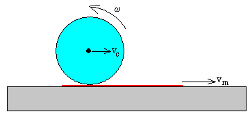 DescripciónEn la figura, se representa un cuerpo redondo de masa m y radio R que rueda sin deslizar sobre un mantel que se desplaza hacia la derecha con velocidad constante vm. Vamos a calcular la velocidad del centro de masa de dicho cuerpo vc respecto de la mesa y su velocidad angular ω de rotación. Dinámica