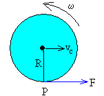Si d es la distancia inicial que hay entre el punto P de contacto entre el cuerpo y el mantel y su borde izquierdo. El tiempo que emplea el cilindro en abandonarlo es t=d/|V|. En ese mismo tiempo, el c.m. del cilindro ha recorrido hacia la derecha una distancia x=vc·t=k·d. Momento angularLa fuerza exterior F que hace moverse al cilindro está aplicada en el punto P. El momento de dicha fuerza es cero. Por lo que el momento angular respecto de P debe de ser constante.