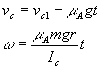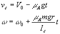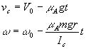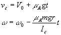 Para t>t1 las velocidades de traslación del c.m. y de rotación alrededor de un eje que pasa por el c.m. serán, respectivamente Como vc disminuye y w aumenta llegará un momento en el que la velocidad del punto de contacto A, VA=vc-w r se anule, en dicho instante la rueda comienza a rodar sin deslizar con velocidad constante