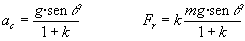 Si conocemos el ángulo de inclinación q y el momento de inercia Ic del cuerpo que rueda, calculamos ac y el valor de la fuerza de rozamiento Fr.