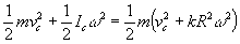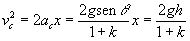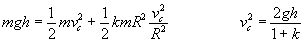 Expresamos el momento de inercia Ic=k·mR2 donde k es un factor geométrico 2/5 para la esfera, 1/2 para el cilindro y 1 para el aro. Si deseamos calcular la velocidad del cuerpo después de haber recorrido una longitud x a lo largo del plano inclinado, partiendo del reposo, empleamos las ecuaciones de la del movimiento rectilíneo uniformemente acelerado La velocidad final vc del c. m. del cuerpo al llegar al final del plano inclinado es Siendo h la altura de partida del cuerpo referida a la posición final, h=x·senq