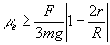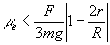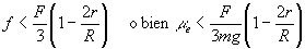 Consideremos que el cuerpo que rueda es un cilindro o un disco de masa m y de radio R, cuyo momento de inercia respecto de a su eje de simetría es Ic=mR2/2, Resolviendo las ecuaciones anteriores, obtenemos En la figura se muestra el vector Fr cuando r=0, r=R/2 y r=R. Para que la rueda se mantenga rodando sin deslizar se debe de cumplir que el valor absoluto de la fuerza de rozamiento estático Fr sea menor que el valor límite meN |Fr|£ meN con N=mg. Si el coeficiente de rozamiento estático µe es tal que El cilindro rodará sin deslizar. En caso contrario, el cilindro rodará y deslizará a la vez bajo la acción de la fuerza F. Analicemos esta situación