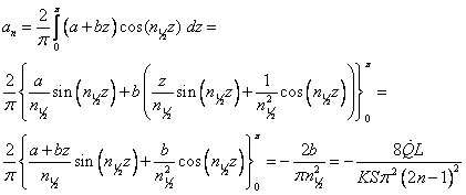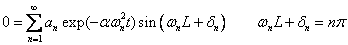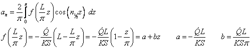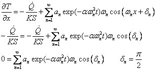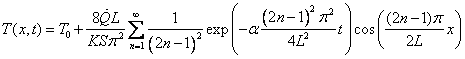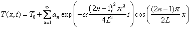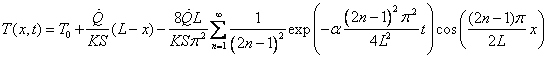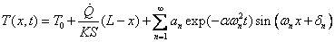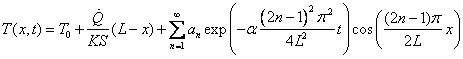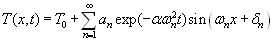 Así, la temperatura en cualquier punto de la barra x, en un instante t, se compone de la suma de un término proporcional a x, y de una serie rápidamente convergente que describe el estado transitorio.