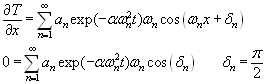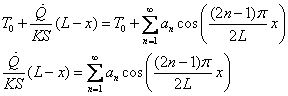 Solamente, queda por determinar los coeficientes an, lo que se conseguirá identificando esta solución con la distribución inicial de temperaturas T(x, 0) en la barra