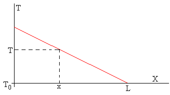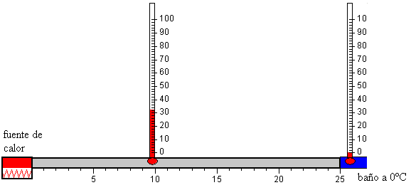 En el estado estacionario la temperatura de los puntos de la barra no cambia con el tiempo, ∂T/∂t=0, ∂T/∂x es constante, de acuerdo a la ley de Fourier