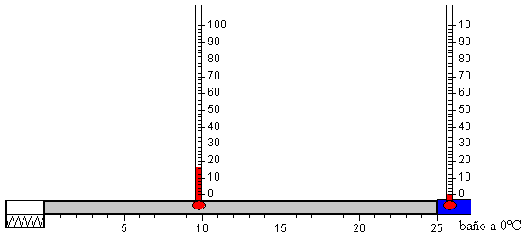 Arrastrar con el puntero del ratón el extremo inferior el termómetro de la izquierda