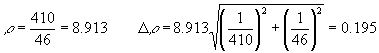 Cálculo de la densidad del cuerpo sólidoSe define la densidad como el cociente entre la masa y el volumen de un cuerpo. De las fórmulas de los errores en las medidas indirectas, se obtiene que el error de un cociente donde Dm=DV=1. Una vez obtenidas las medidas de m y de V, se calcula Dr, mediante la fórmula anterior. Ejemplo: Se va a medir la densidad del cobre